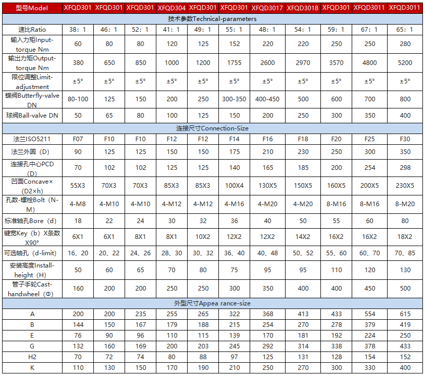 該系列蝸輪箱適用環境廣、功能全面、形式多樣(有手輪式、手輪帶鎖式等),產品共有11種型號。